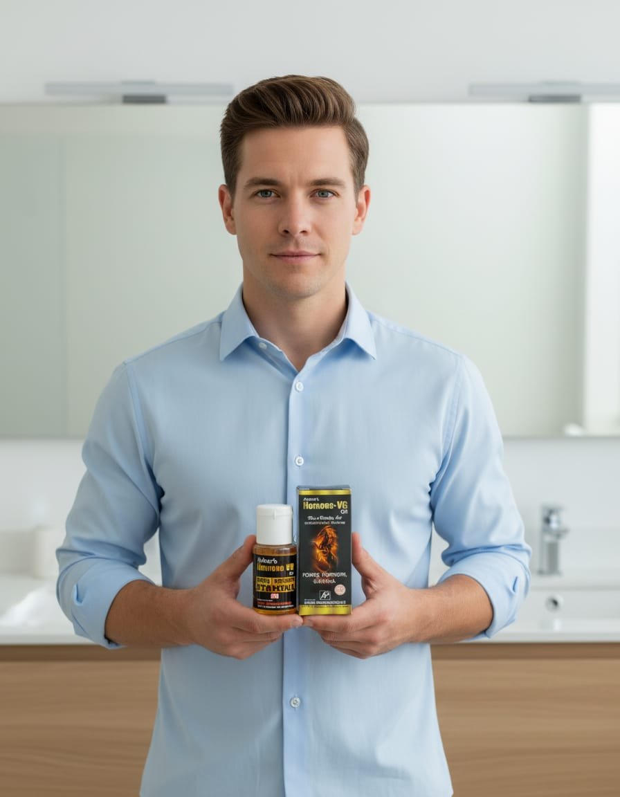 Homoeo Vg Oil (Men’s Vitality Oil) is a premium herbal blend formulated especially for men to support vitality energy, and endurance. Boosts Strength & Stamina. It naturally enriched with traditional herbs known to promote strength and physical performance for an active lifestyle. Quick Absorbing & Non Sticky Lightweight, fast-absorbing oil that penetrates deeply without leaving any greasy residue perfect for daily massage.