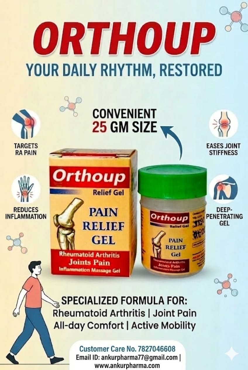 ORTHOUP RELIEF GEL (Pain relief gel) is useful in acute and chronic muscular or articular affections like Gout lumbago, Bursitis Sciatica, Spondylitis and bone or tendon injury.